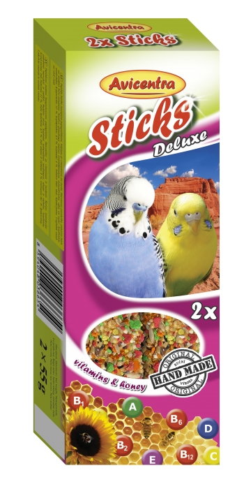 Doplňkové krmivo pro andulky. Tyčinky s vitamíny jsou výbornou pochoutkou, ale také krmivem, které Vašemu mazlíčkovi dodává důležité vitamíny a minerály pro zdravý a vitální život. Tyčinky jsou speciální krmivo, kde musí Váš mazlíček vyvinou úsilí k získání své potravy podobně jako v přirozeném prostředí. To napomáhá jeho fyzické a psychické kondici.