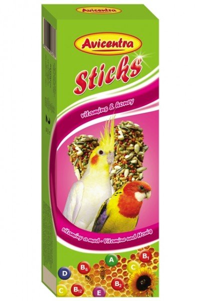Doplňkové krmivo pro malé a střední papoušky. Tyčinky s vitamíny a medem jsou výbornou pochoutkou, ale také krmivem, které Vašemu mazlíčkovi dodává důležité vitamíny a minerály pro zdravý a vitální život. Tyčinky jsou speciální krmivo, kde musí Váš mazlíček vyvinou úsilí k získání své potravy podobně jako v přirozeném prostředí. To napomáhá jeho fyzické a psychické kondici.