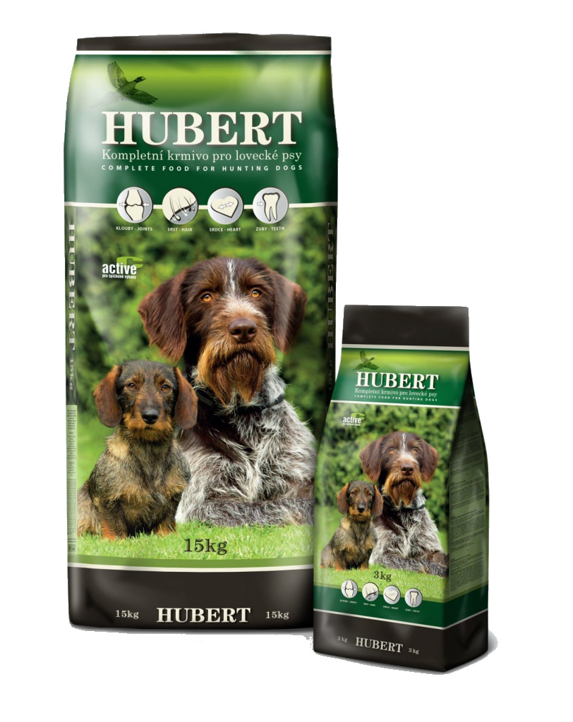 HUBERT je kompletní granulované krmivo pro lovecké psy. Speciálně vyvážená receptura je vytvořena s ohledem na práci loveckých psů.