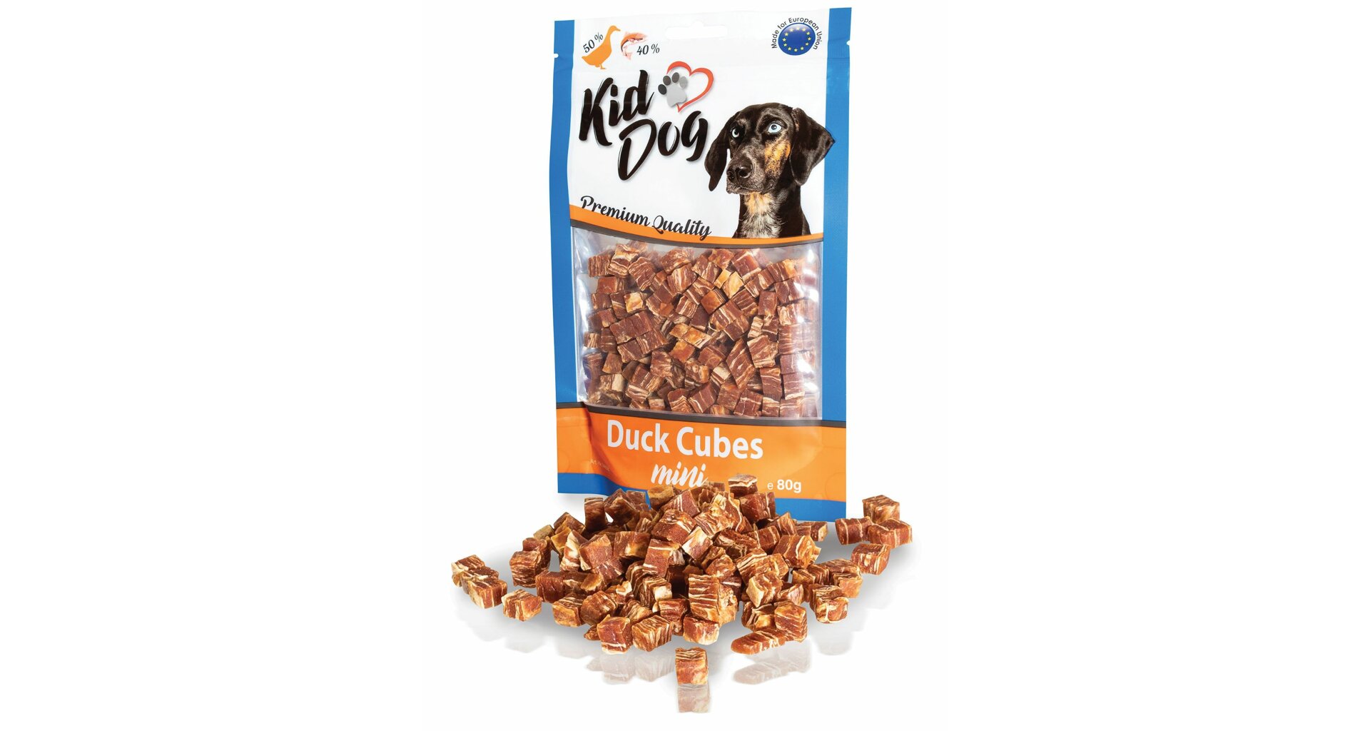 KIDDOG mini kostičky z kachního masíčka a tresky 80 gSkladem55 Kč/ ks49 Kč bez DPH
