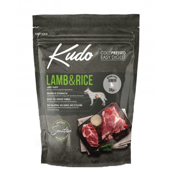 Kudo Dog LG Adult Medium & Maxi Lamb & Rice je kompletní za studena lisované krmivo s obsahem jehněčího masa splňující nutriční požadavky dospělých psů středních a velkých plemen od 1. roku života. Kudo je připravováno při nízkých teplotách (za studena lisováno) z těch nejkvalitnějších masných složek, zeleniny a bylinek. Neobsahuje umělá barviva, aroma či konzervanty, zatímco kvalitní suroviny jej činí lehce stravitelným. S vysokým obsahem masa je krmivo neodolatelné pro Vašeho psa. S vyváženým poměrem bílkovin a tuků pro udržování ideální váhy a kondice Vašeho psa. Bezlepková formule se dvěma druhy živočišné bílkoviny: jehněčí a hovězí.