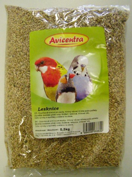 Doplňkové krmivo pro ptactvo. Svým obsahem minerálních látek připomíná lesknice pšenici. Rozdíl je ale v množství obsažených nenasycených mastných kyselin a tryptofanu, kterých má lesknice více. Tato aminokyselina je nezbytná ke vzniku serotoninu a melatoninu, označovaných jako hormony štěstí. Lesknici můžeme dávat samostatně, přidat do krmiva nebo podávat i jako pamlsek. Vždy je třeba zajistit dostatek pitné vody. Množství lesknice podávejte dle potřeb Vašeho mazlíčka.