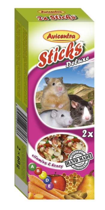 Tyčinky deluxe s vitamíny a medem pro křečky, potkany a myšiSkladem35 Kč/ ks31 Kč bez DPH