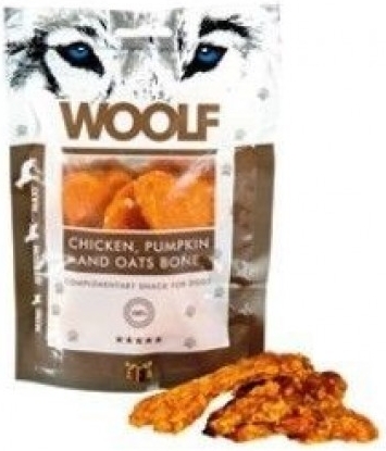 WOOLF pochoutka large chicken, pumpkin, oats bone 100gSkladem69 Kč/ ks62 Kč bez DPH