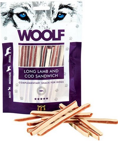 WOOLF pochoutka soft lamb and cod sandwich long 100gSkladem69 Kč/ ks62 Kč bez DPH